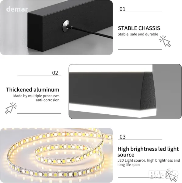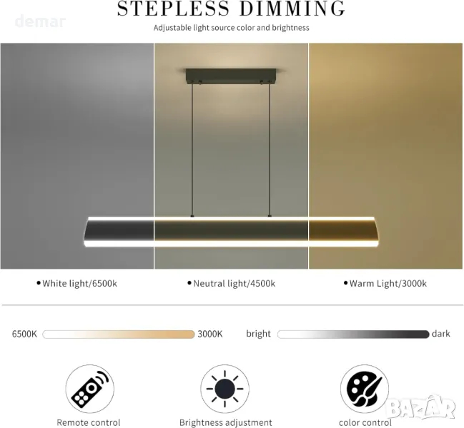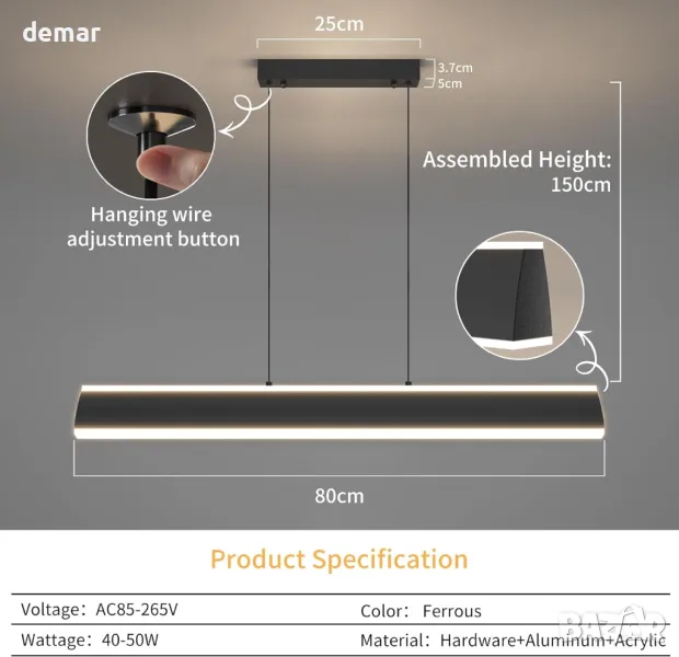 80CM модерен линеен пендел с дистанционно управление, с 1,5m регулируеми кабели