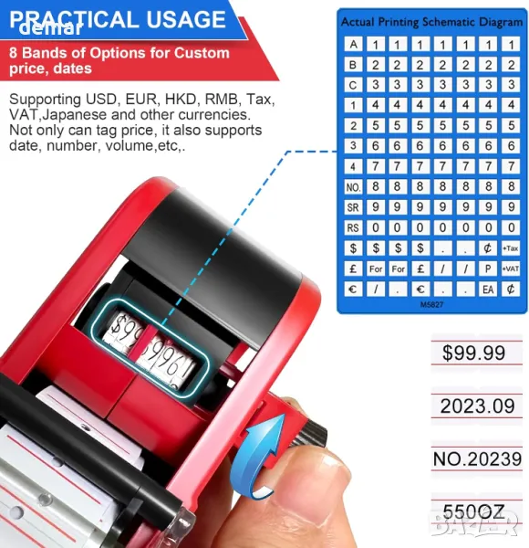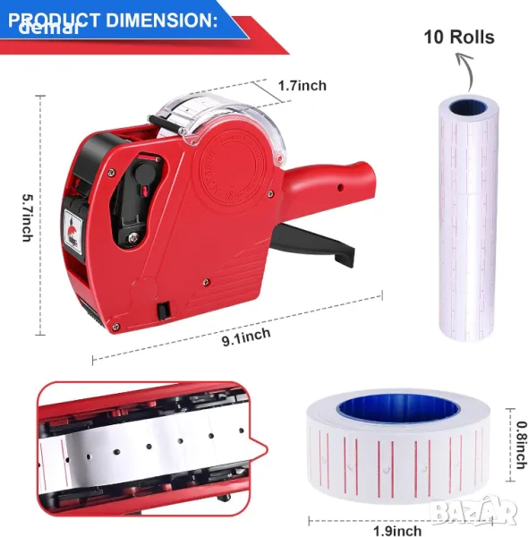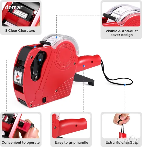 Този продукт включва два ценови пистолета, десет ролки етикети (общо 5000 етикета), две мастила за пълнене и две подаръчни кутии. Той поддържа множество валути (паунд, пени, евро, щатски долари) и може да обозначава цени за храна, дрехи и хардуер, като същевременно позволява етикетиране на дата. Лекият и ергономичен дизайн (с тегло само 0,29 кг) осигурява удобно боравене при продължителна употреба. Разнообразните му приложения го правят идеален за дома, офиса, хранителни магазини и магазини за търговия на дребно. Изработен от издръжлив ABS материал, този инструмент за ценообразуване осигурява гладка и ефективна работа.