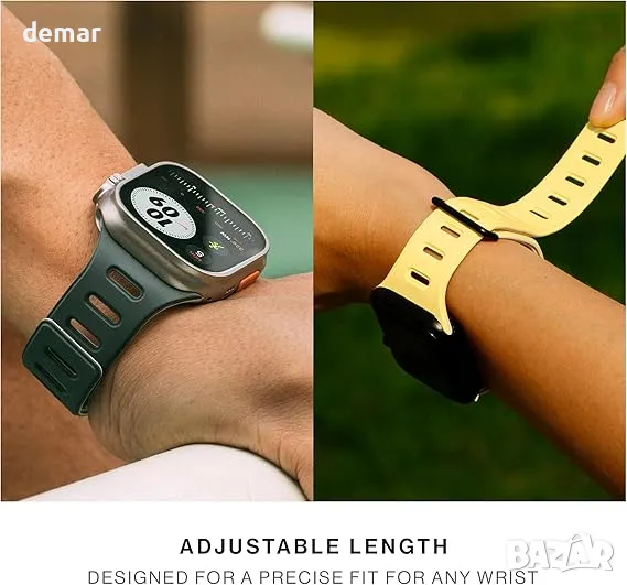 Тази универсална лента разполага с двустранен дизайн за бърза промяна на стила, предлагащ множество цветови комбинации, подходящи за различни поводи. Той е специално направен за спорт, включващ силно магнитно закрепване, което гарантира, че остава на място по време на интензивни тренировки, заедно с дишащи отвори и ръбове и UV-покритие за устойчивост срещу прах, пот и вода. Вградените магнити позволяват лесно закрепване без закопчалки, докато магнитната катарама повишава сигурността. Изработен от лек, дишащ и гъвкав силикон, той се оформя удобно на китката за носене през целия ден, а регулируемата дължина осигурява плътно прилягане за всеки размер на китката.
