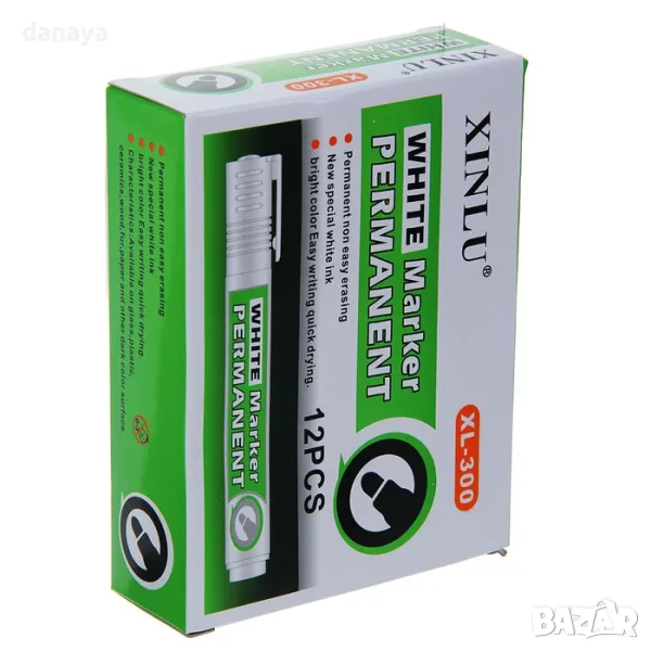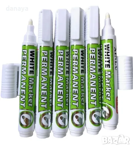Белият перманентен маркер е идеален за трайно писане върху тъмни повърхности като стъкло, метал и пластмаса. Устойчиво на вода и избледняване мастило, подходящо за професионална и домашна употреба.