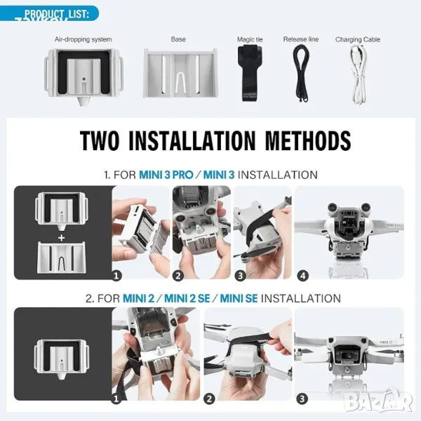 DJI mini, който може да се използва за DJI Mini 4k/Mini 4 pro/Mini 3 Pro/Mini 3. (Само система за изпускане на въздух в пакета)