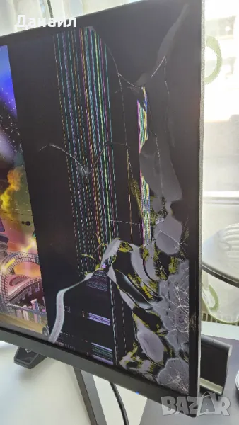Гейминг монитор Asrock - PG27Q15R2A, 27", 165Hz, 1ms, VA, FreeSync, Curved - дисплея е пукнат в единия край и 1/3-та от него не работи, вижда се на снимките. Монитора има още 9м. гаранция, но тя не покрива счупване и се оказва, че тази марка монитори нямат следгаранционен сервиз и затова го продавам за резервни части. Само лично предаване.