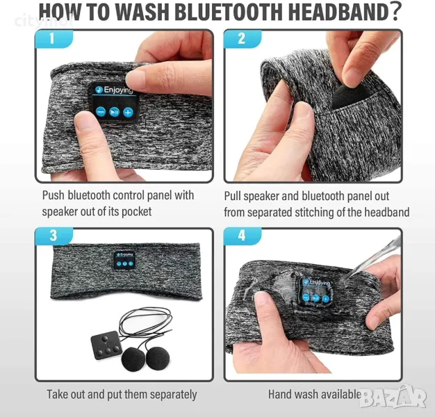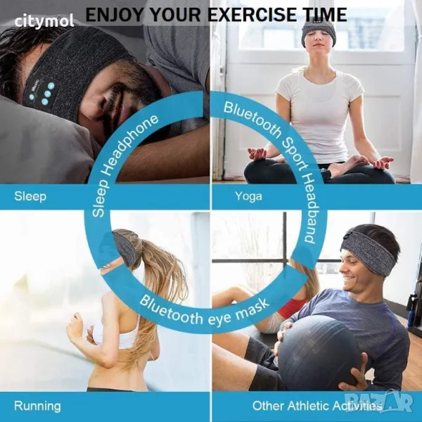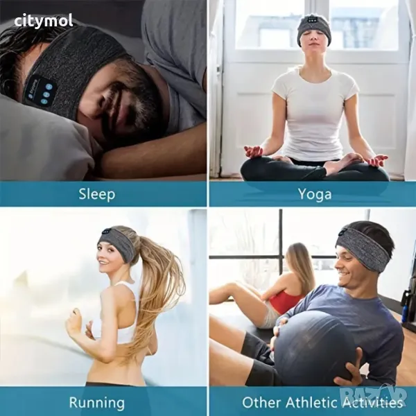 - Лента за глава със лушалки, за спорт и за сън. Вграден Bluetooth, изключително меки и леки, изработени са от издръжлива и дишаща материя, лесно се разтягат, за да паснат на всички размери глава, също невероятно меки и хипоалергенни. Bluetooth слушалките с лента за глава могат да се перат, просто отстранете високоговорителите и почистете лентата. Полезно за носене на маска за очи по време на сън, така че функцията за блокиране на светлината е полезна.