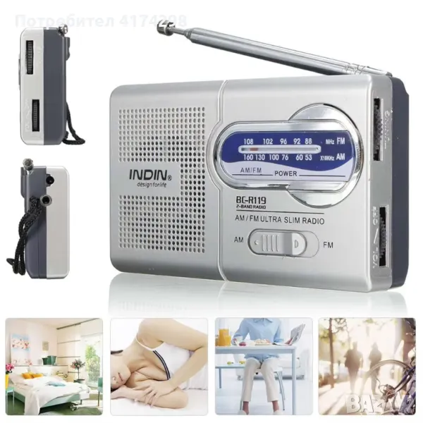 Честота: FM88-108MHz, AM 530-1600KHz;