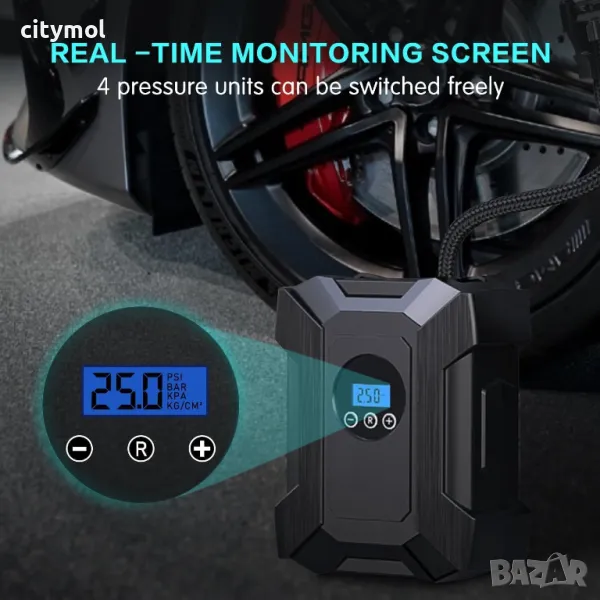 Компресор за автомобилни гуми 12V, LED фенер, LCD дисплей, за автомобили, велосипеди,150PSI