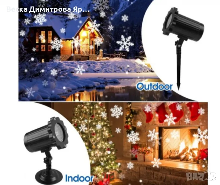 Водоустойчив LED проектор Снежинка за прожектиране на сняг