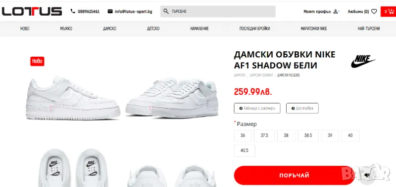 NIKE AIR FORCE 1 Shadow Triple White оригинални маратонки номер 38