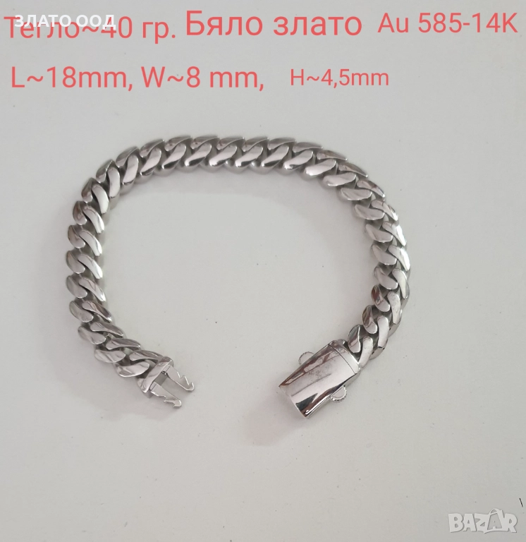 Златни гривни, унисекс. Au 585-14K. Дължини от 18 до 22 см. Тегла от 7,40 гр и +