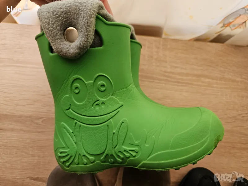 Ботушките жабки са размер 24/25, дължина измерена отвътре около 16 см, може да погледнете таблицата на производителя. Имат топло чорапче. Забележки има като натъртвания. Цена за тях 25 лв/продадено/. Черни цвички Колев и Колев, 27 номер. Около 15 см дължила, за тясно краче. Има забележки по кожата и по подметката. Цена 2евро. Пантофи естествена кожа, лъвчета. Около 16 см дължина, ширина външно около 7,5 см. Цена 2.5 евро.Вълнени зелени пантофи, 26 размер 16 см дължина, не са носени/продадени.