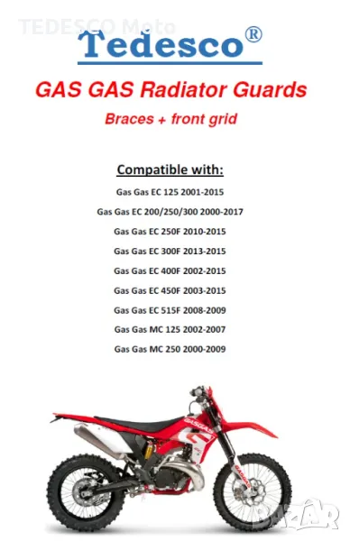 НОВИ предпазители TEDESCO ® - шини+решетка, за радиаторите за ендуро модели на GAS GAS от 2000 до 2017 година.