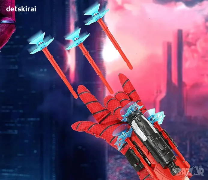 Ръкавицата със стрелец, връв и 3 вендузи е чудесна играчка за деца, тя позволява на децата да развият въображението и креативността си, когато се забавлявате.