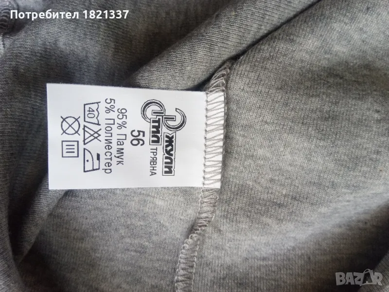 Размер 56. Състав 95 % памук и 5 % полиестер. Производител Джули стил, Трявна.