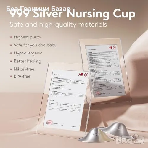 Нови Перфорирани сребърни накрайници за кърмене - 999 сребро momcozy