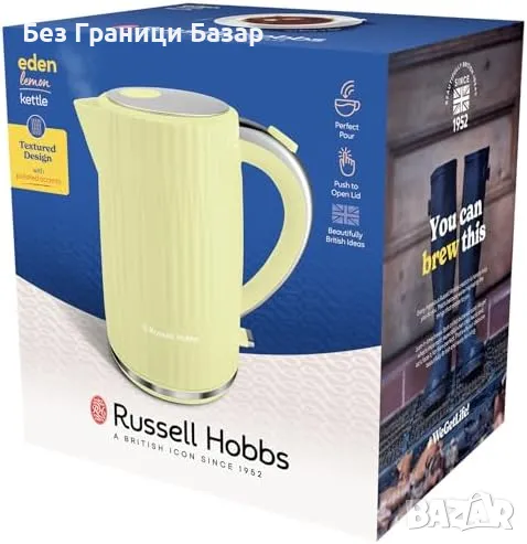 Нова Лимонова електрическа кана за вода Russell Hobbs 1.7L, 3000W