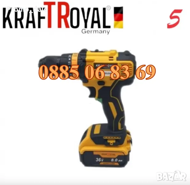 KRAFTROYAL 36V 8Ah е промо продукт предназначен за всеки майстор, удобен за пренос в куфар! С пет взаимозаменяеми глави (приставки) този инструмент предлага гъвкавостта и удобство. Елегантно съчетава 5 инструмента в един компактен инструмент.