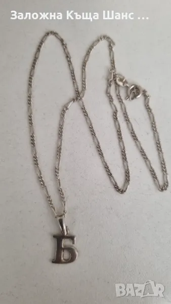 Сребърно синджирче с висулка буква Б 4,07 гр → Обява 47459041