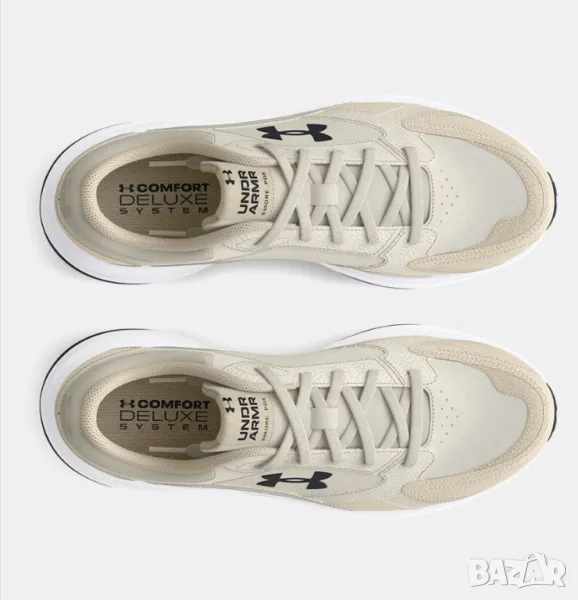 Издръжливата горна част изработена основно от естествена кожа за повишена издръжливост, дишане и поддръжка, където имате нужда. Маратонките притежават гъвкава конструкция, което ги прави универсални и изключително комфортни. Подсилването в предната част около пръстите, встрани и в задната част около петата защитават най-чувствителните зони от удари и износвания. Лого Under Armour върху езика, встрани и отзад. Нисък профил за по-голяма свобода при движение. Вътрешната част е покрита с текстилна облицовка и силно омекотена стелка. Вътрешната подложка и подсилената пета осигуряват по-голяма стабилност без загуба на гъвкавост. OrthoLite® - стелка с двоен слой за повече комфорт, подпомага циркулацията на въздуха и изпълнява антибактериална функция, създава по-хладна, по-суха, по-здрава с фантастично омекотяване и поддръжка среда под краката, която не позволява спарване и вмирисване. Междинната подметка Charged Cushioning® използва пресована, формована пяна за максимална отзивчивост и издръжливост. Издръжлива изцяло гумена подметка със стратегически модел за завъртане и сцепление.