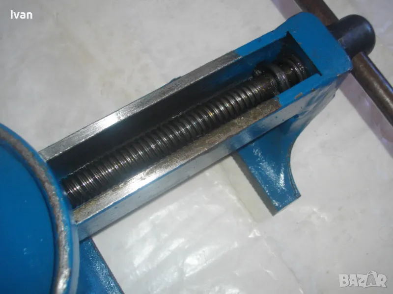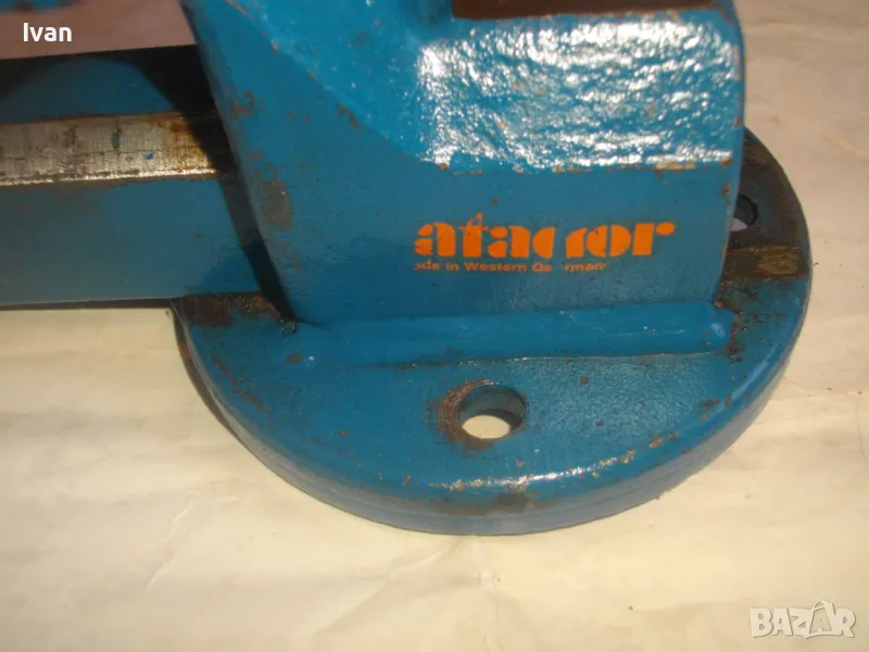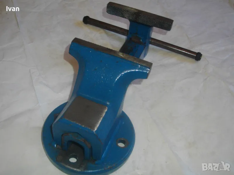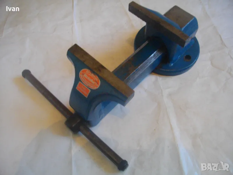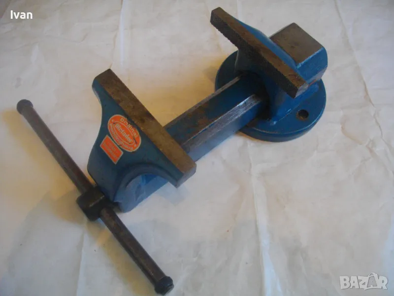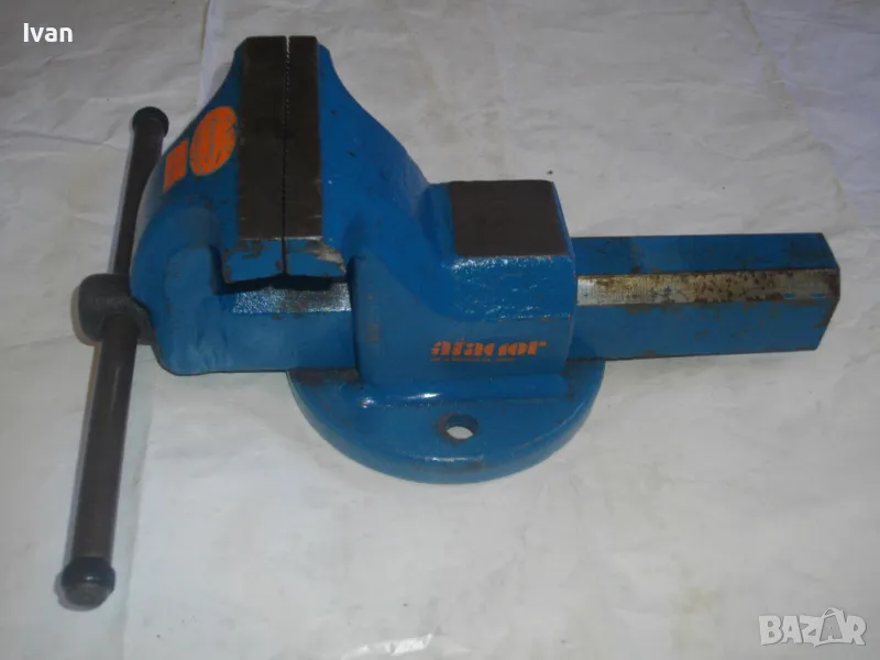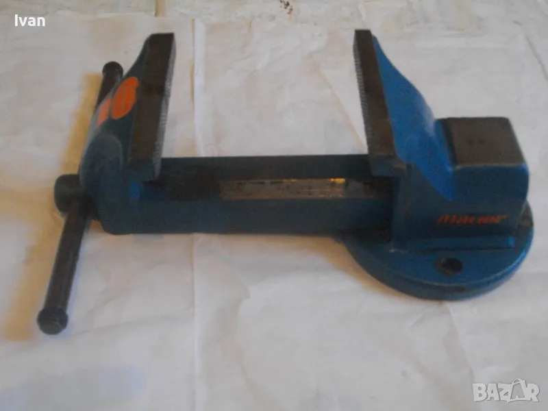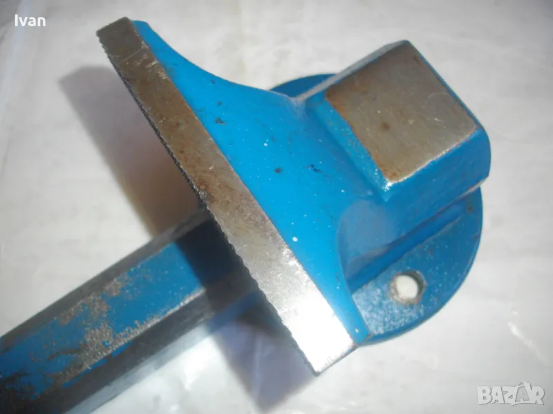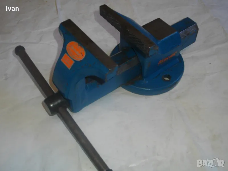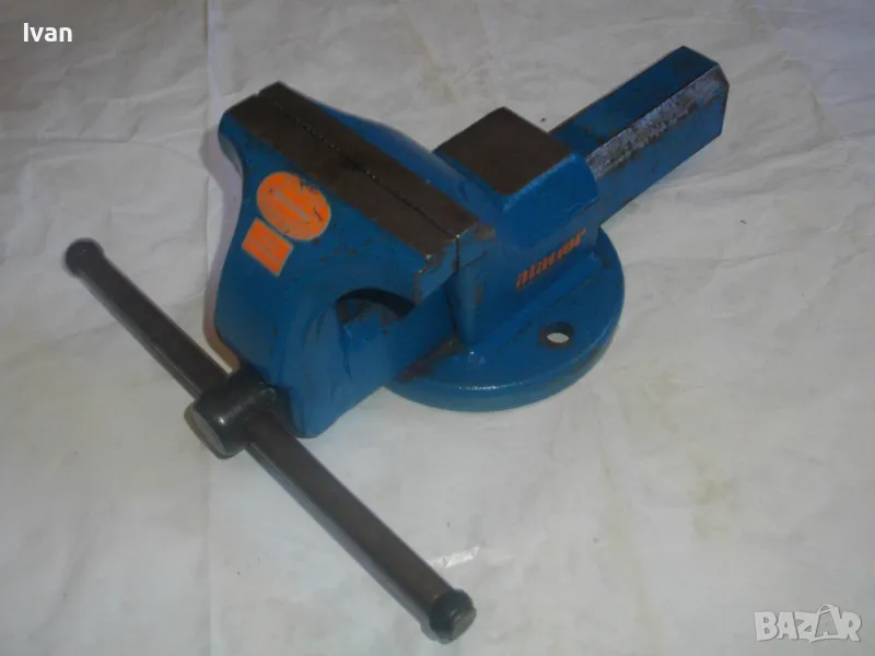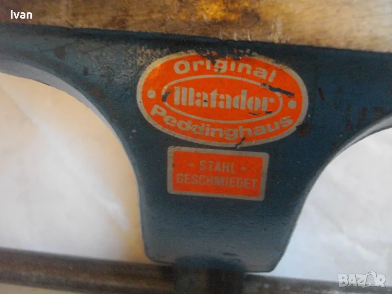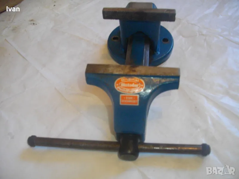 Шлосерско масивно синьо менгеме - цена 259 лв. (132.42 €). Съвсем ново, неизползвано и неупотребявано. Немско оригинално старо качество и старото производство на ФРГ. Марка маркировки Matador. Oroginal MATADOR Peddinghaus. STAHL Geschmiedet. MATADOR Made in Western GERMANY. Отлично състояние. Затворено Дължиа 170 мм, кръгла основа. Изцяло от масивно плътно дебело желязо. Челюсти вградени оребрени метални закалена стомана размер 10 см дължина. Тегло на менгемето - 5,0 кг. Отварян захват - от 0 до 12 см. Врътка върток оригинален от закалена инструментална стомана. Наковалня челно отгоре на менгемето.
