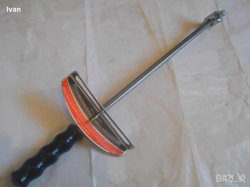 Динамометричен ръчен ключ - цена 129 лв. 200 нютон метри. Съвсем нов ,неизползвани неупотребяван. Дължина 45 см, твърдо бакелитово оребрено покритие на дръжката. Немско производство. Отпред двустранно захващане на торсове - квадрат 1/2 и квадрат 5/8 и двата със съчма. Ключа е съвсем точен - стрелката пада точно върху нулата на скалата. Скала алуминиева оразмерена Mkp 0-20 и Nm 0-200.