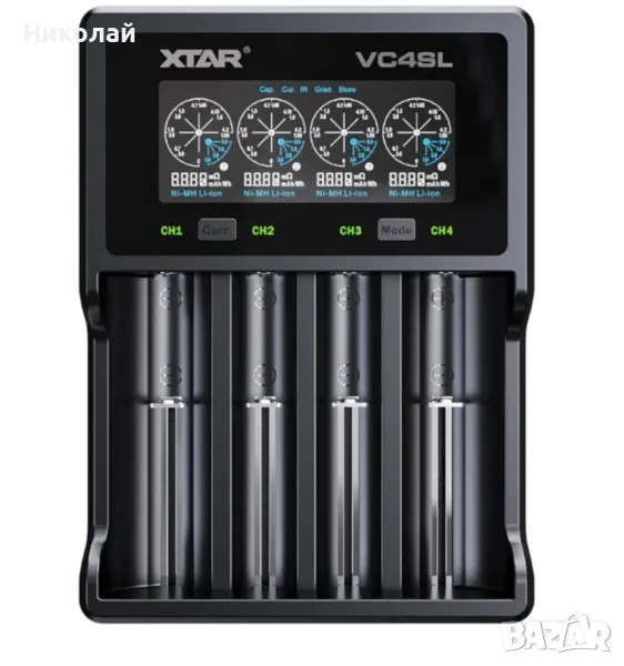 Зарядно у-во XTAR VC4SL, 4 гнезда, LCD дисплей, USB, LiIon & NIMH, 18650, CR123, AA, AAA → Обява 47460774