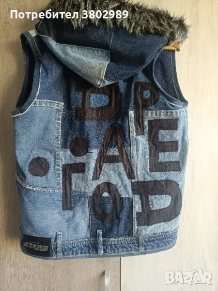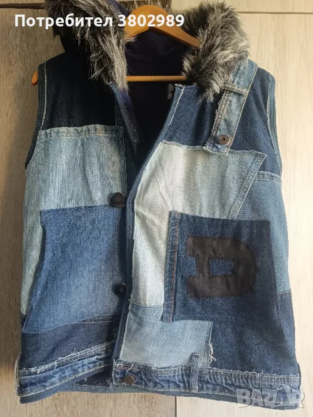 Комплекта е абсолютно нов,обличан е един път.Дънков елек с дебела подплата и дънките са тип потури.Шит е по поръчка.Страхотен комплект.