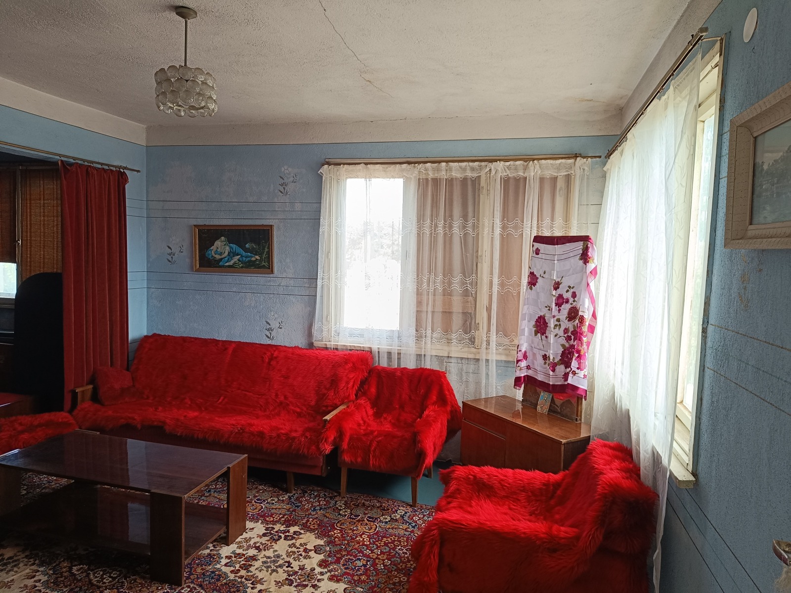 Продава се масивна, монолитна къща, на два етажа / с плоча между етажите/, в предпочитана за живеене част, на тихо и спокойно място, с лице на асфалтов път. Разпределението на първия /партерен/ етаж: предверие, две големи самостоятелни стаи, голямо избено помещение /с възможност за обособяване на вътрешен санитарен възел/; Разпределение на втория етаж: предверие, три големи стаи /от които две преходни и една самостоятелна/, килер - подход за ревизия на подпокривно пространство.