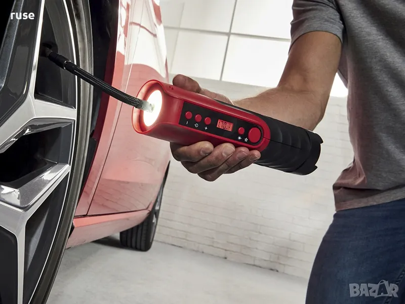 - Едно зареждане на батерията е достатъчно за помпане на 1 автомобилна гума 225/55 R16 от 1,5 бара до 2,5 бара / 2