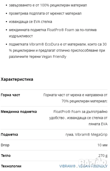 подметката Vibram® EcoDura е от материали, които са 30 % рециклирани и предлагат отлично приспособяване при различните терени Vegan Friendly