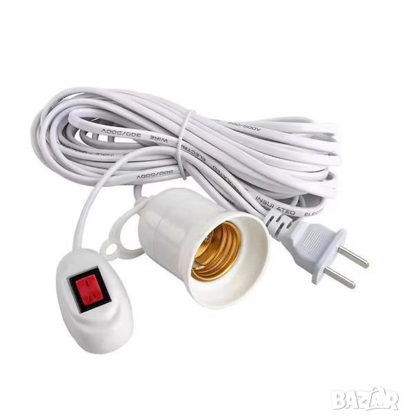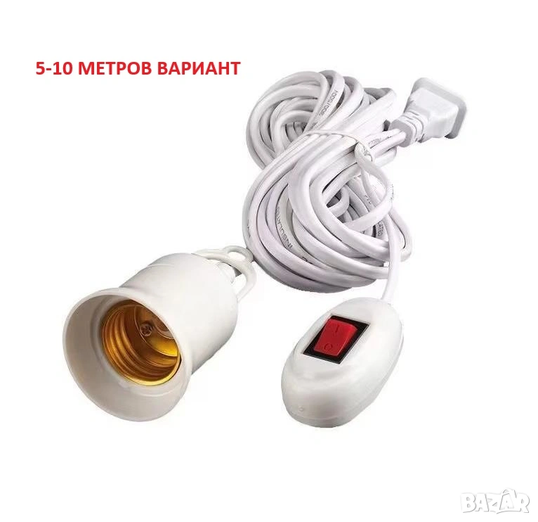 удължител за гаражи, къмпинг или помещения без осветление. Захранващ кабел за лампа с вграден ключ. За крушки E27. Много популярни домакински осветителни уреди.