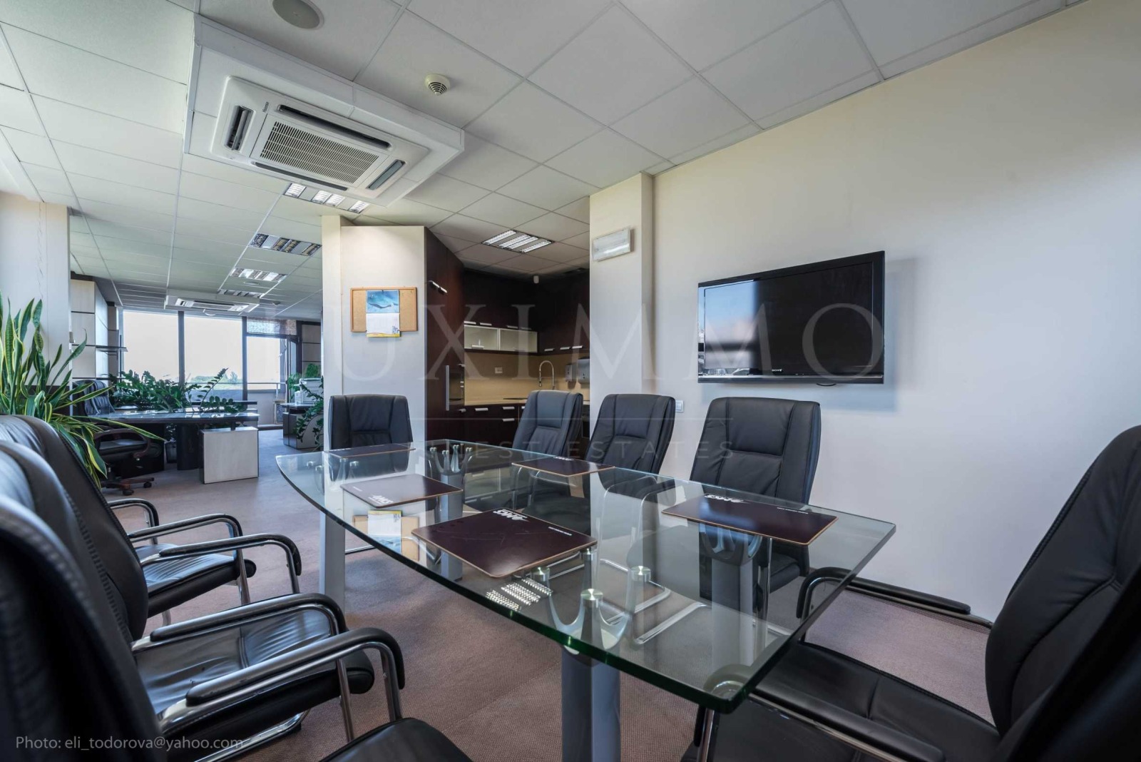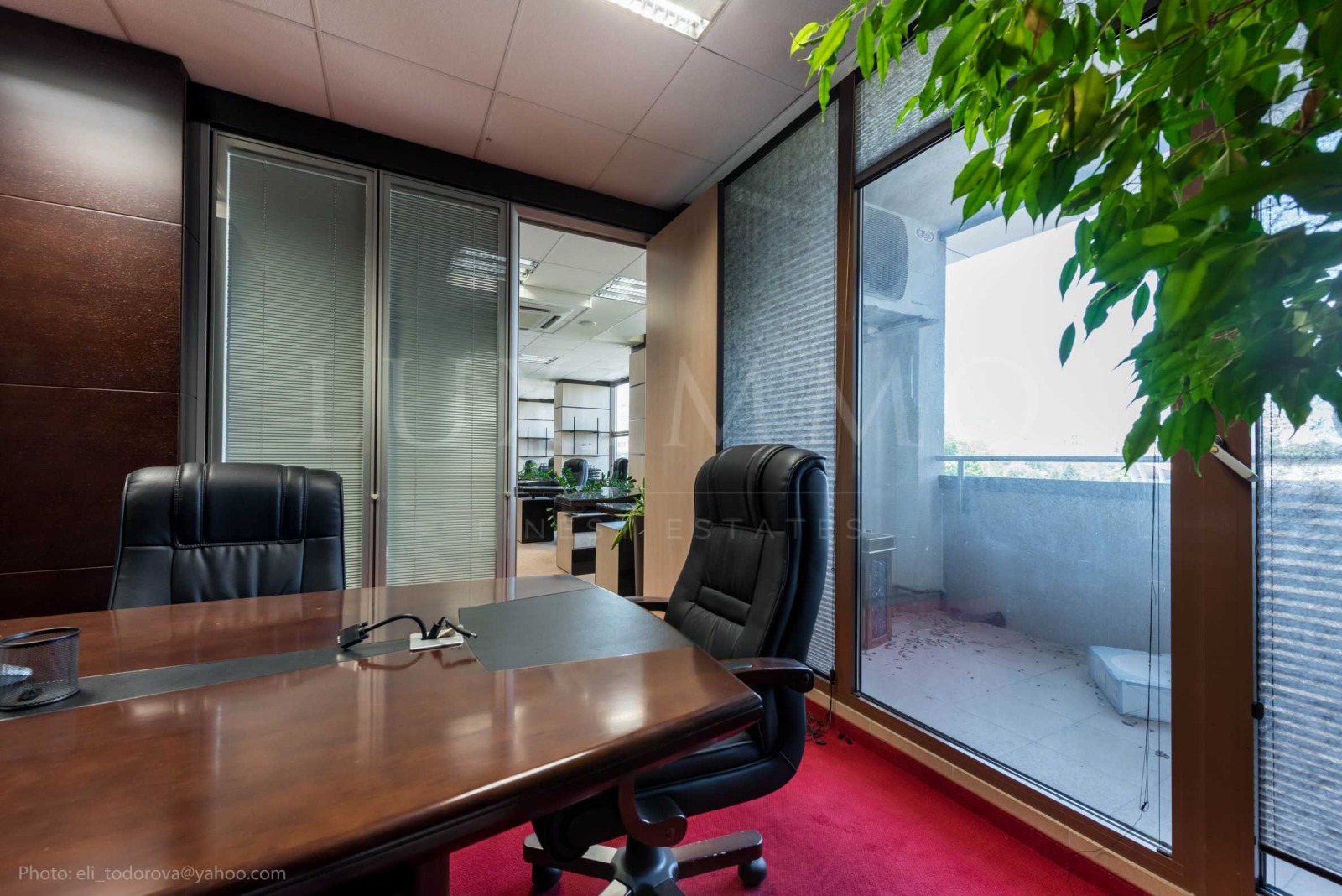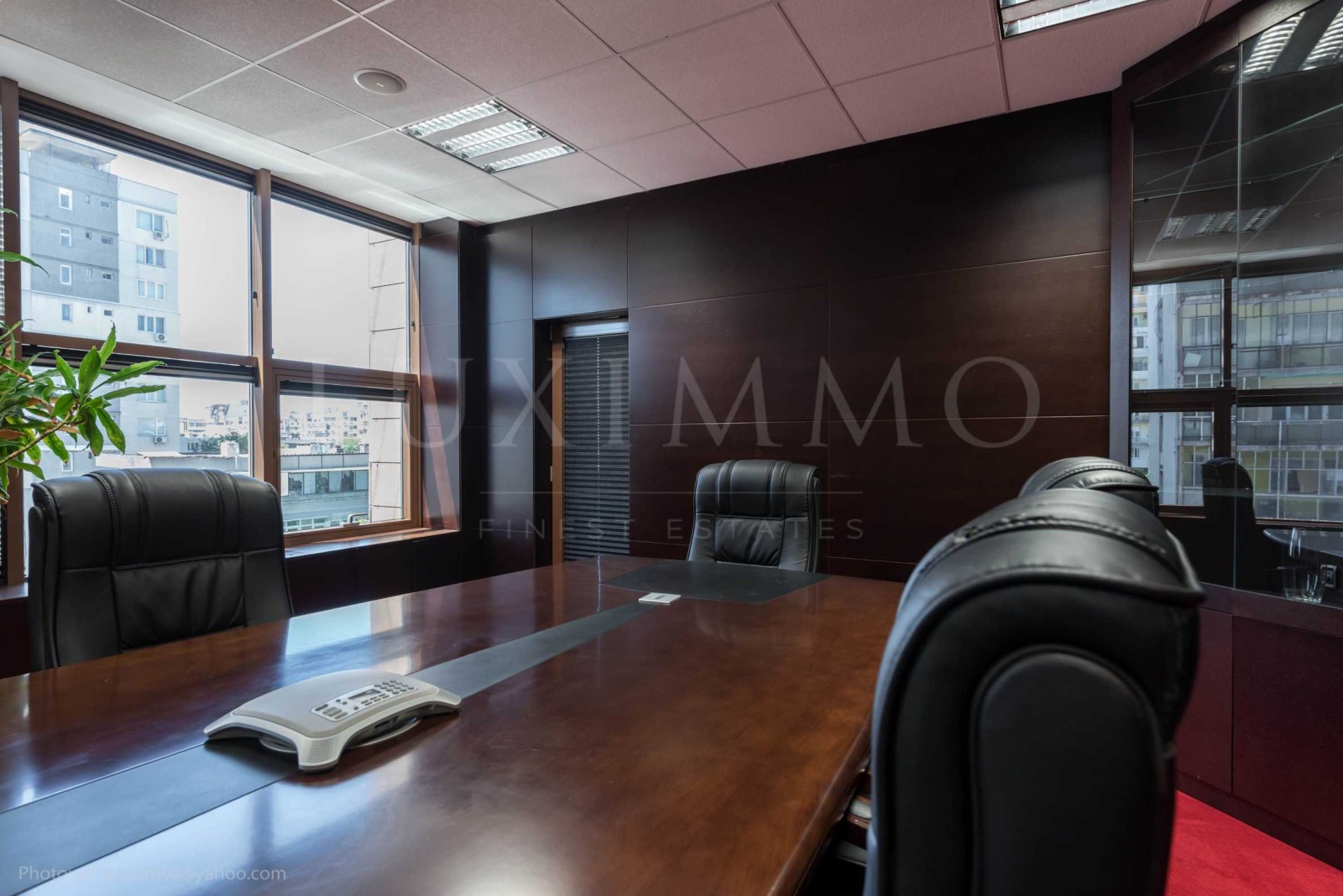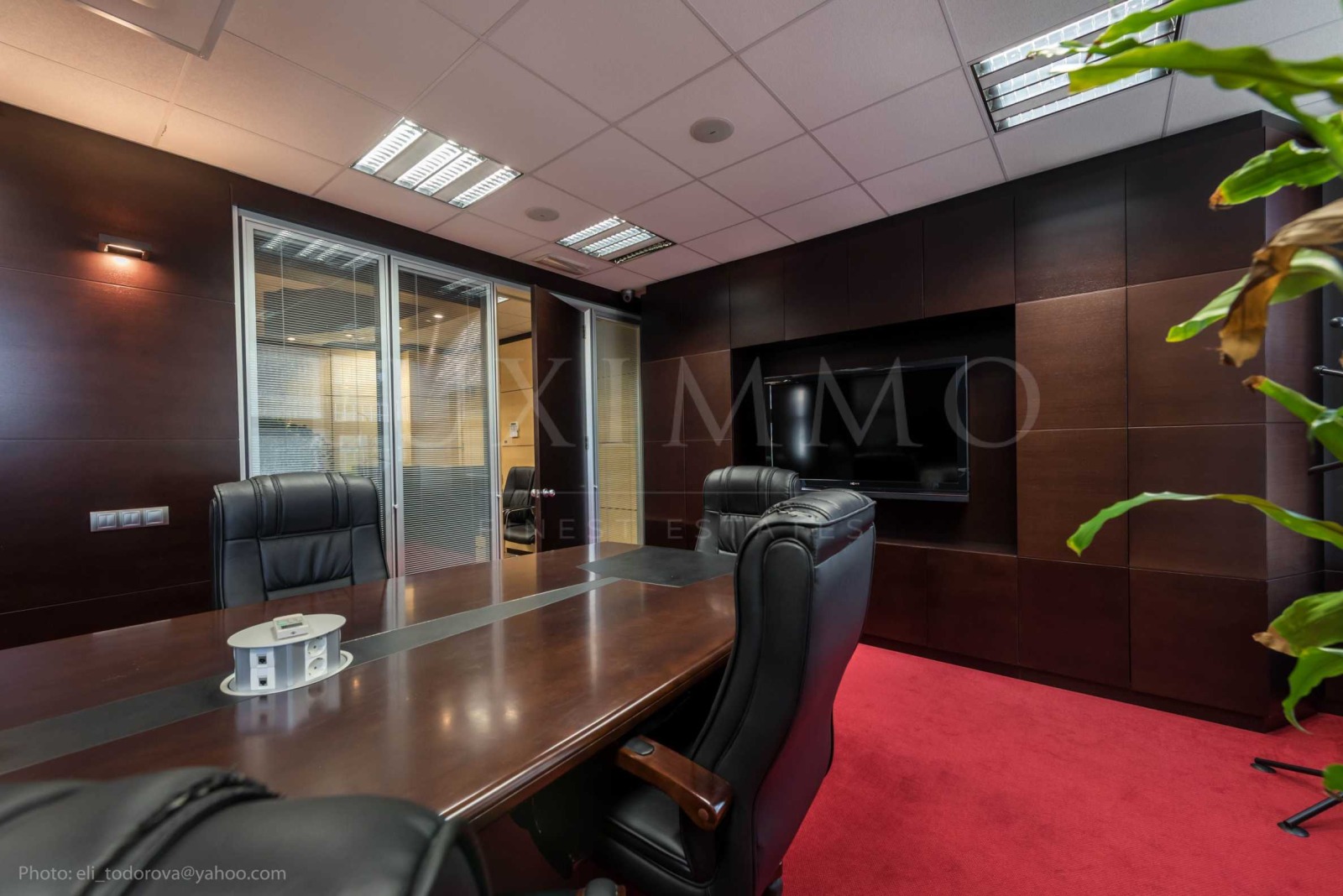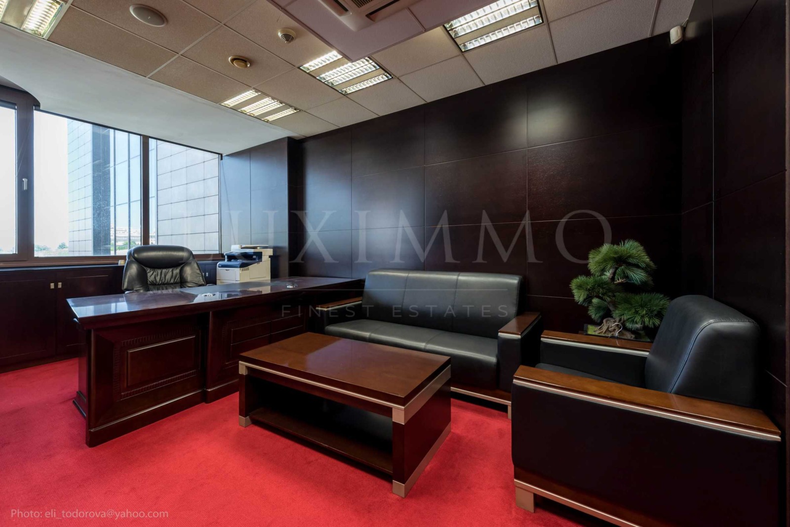 Първата зона е заседателна зала, представителен кабинет, баня с душ кабина с масажор, тоалетна - 63 кв.м.