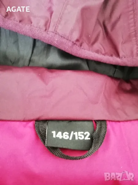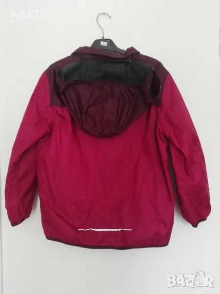 Детско двуцветно яке против дъжд и вятър с подвижна качулка и хастар за ръст 146-152 см. Има два външни джоба.
