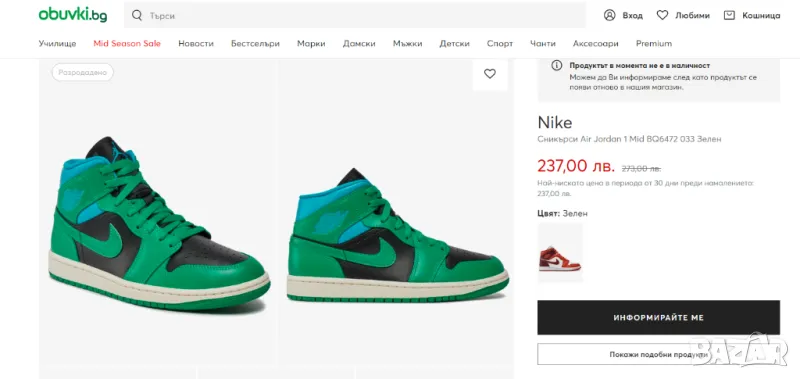 Nike Air Jordan 1 Mid “Lucky Green Aquatone” BQ6472-033 е част от по-голямата колекция “Aquatone”. Бързо се превърна в популярна обувка, особено сред почитателите на дамските обувки Jordan.