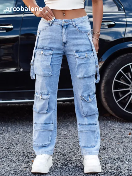 Тези карго дънки са перфектната комбинация от мода и комфорт. Многобройните джобове им придават уникален характер, а свободната кройка осигурява свобода на движение. Отличават се с модерен стил и пасват както на ежедневния, така и на по-елегантния стил. Перфектен за ежедневни тоалети, изискващи функционалност и стил.