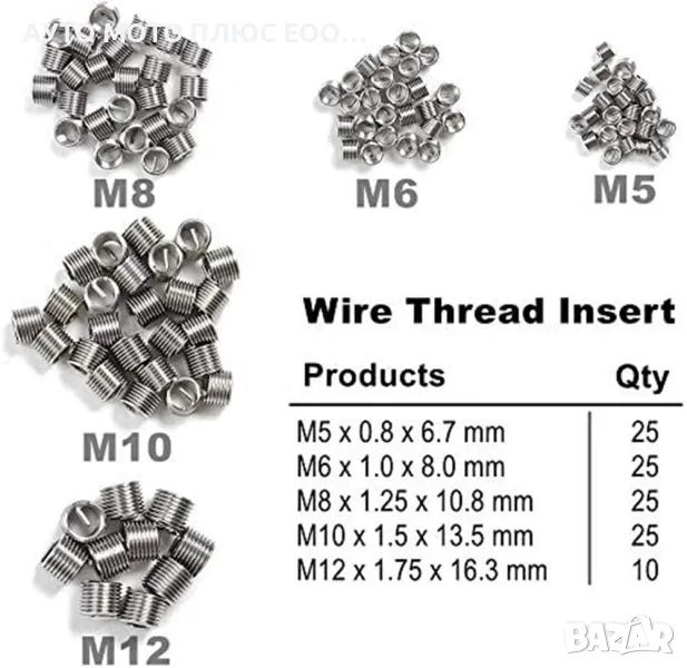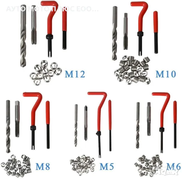 Комплектът за възстановяване на резби M5/M6/M8 /M10 /M12 се използва за ремонт на резби, така че да можете да възстановите безопасни връзки между частите. Възможен е ремонт на масления картер, трансмисията, както и резбите на диференциала.