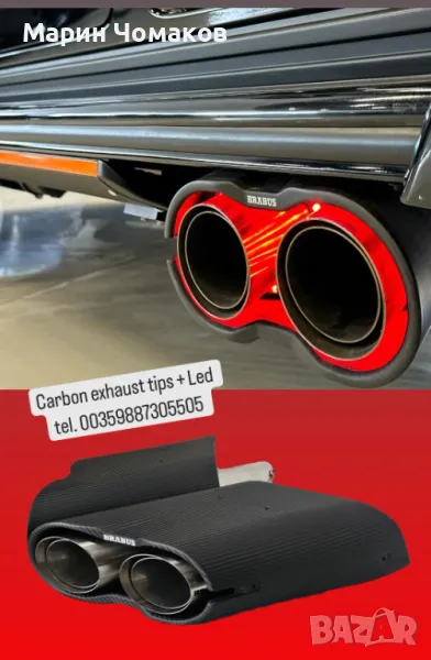 BRABUS G900 Rocket Style накрайници за ауспуси от неръждаема стомана + карбон кожух за накрайници с LED подсветка !