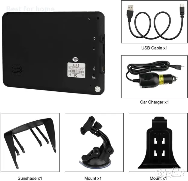 Tovbmup GPS навигация, 7 инча екран, 8GB, 256MB, FM предавател, черен