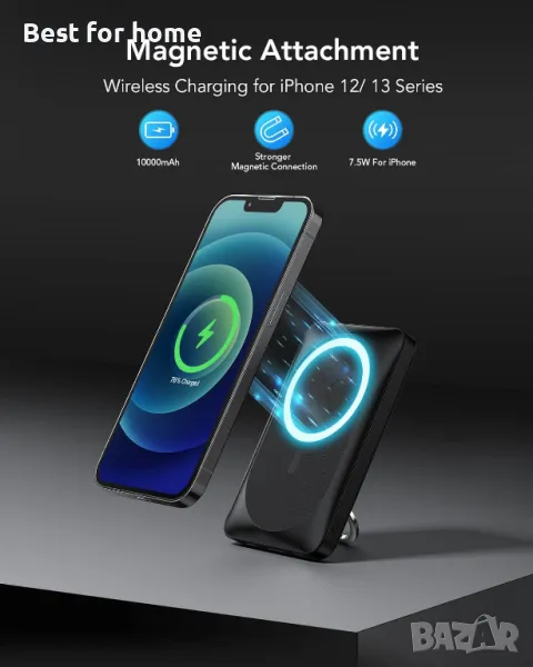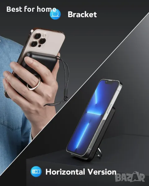 【Безжично зареждане за iPhone】 Съвместим с режими на зареждане 5 W/7,5 W/10 W/15 W. **Прикрепете магнитен пръстен (включен) към вашия телефон с Android за лесна употреба!