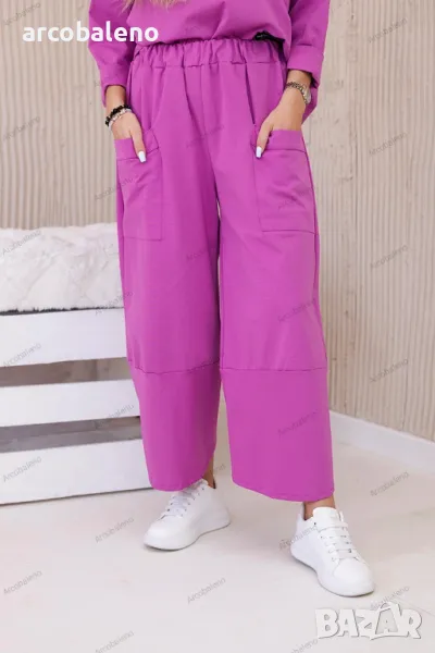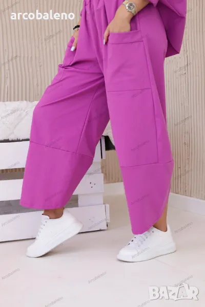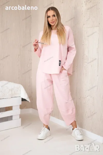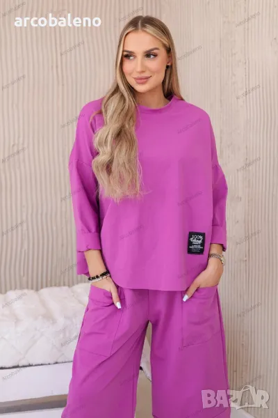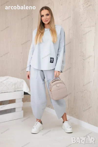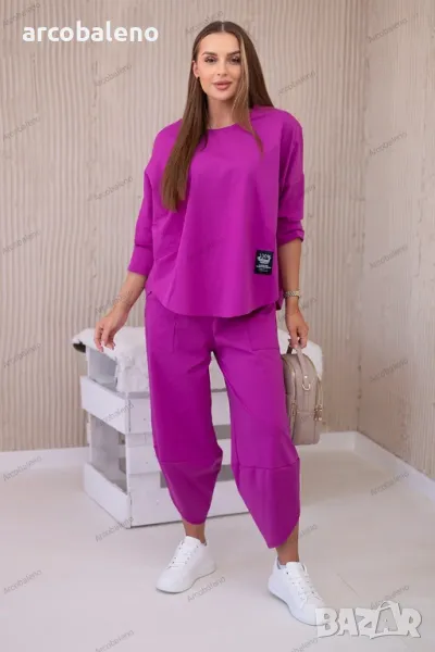 Италианският комплект е съчетание от елегантност и комфорт, идеален за много поводи. Тази материя е не само мека и приятна на допир, но и изглежда красива. Суичърът е перфектна дреха както за ежедневието, така и за специални поводи. Можете да го носите самостоятелно или да го комбинирате с друга дреха, създавайки изключително стилен тоалет. Панталоните са перфектното допълнение към комплекта. Свободната им кройка позволява свобода на движение, което ги прави не само стилни, но и много удобни. При избора на панталон вие избирате комфорт и елегантност в едно. Италианският комплект е отличен избор за тези, които ценят високото качество и уникалния стил. Независимо дали ще се срещнете с приятели, ще работите или ще излезете вечер, този комплект със сигурност ще ви накара да се откроите от тълпата. Размерът е универсален и става за жени, носещи размер S, M или L.