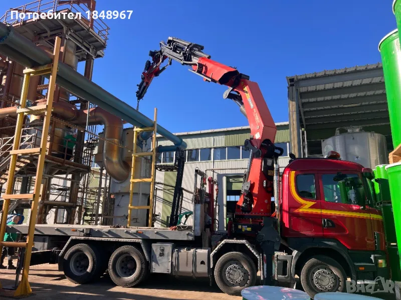 Камион с кран- дължина на стрелата до 36 метра, товароподемност на крана до 14.5 тона.