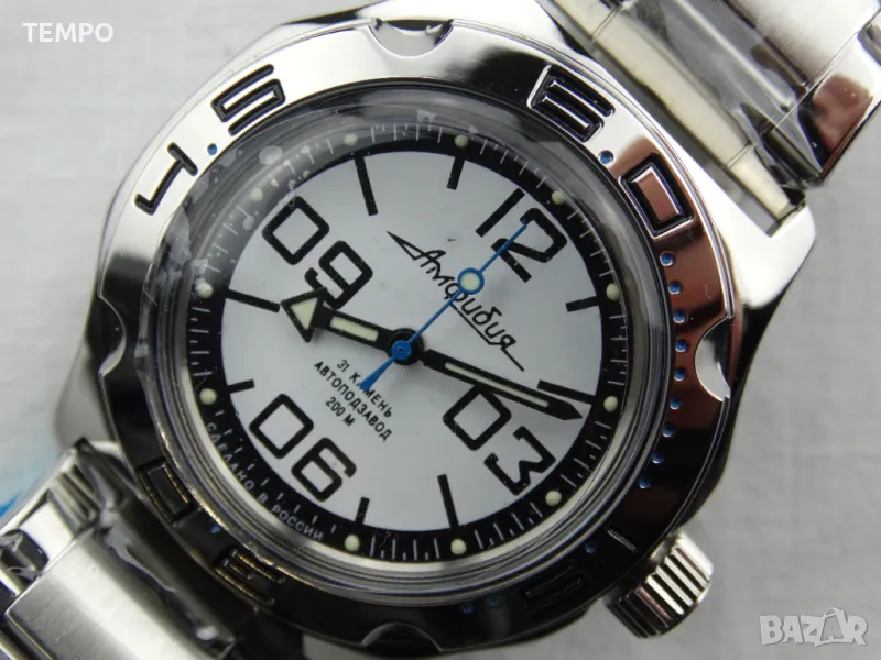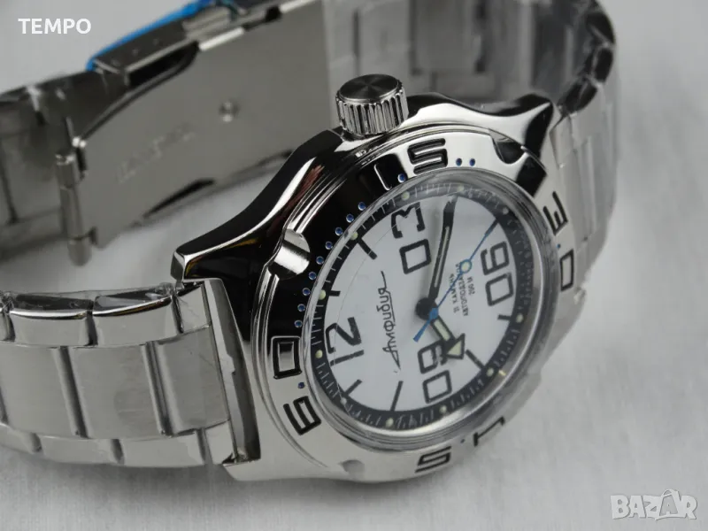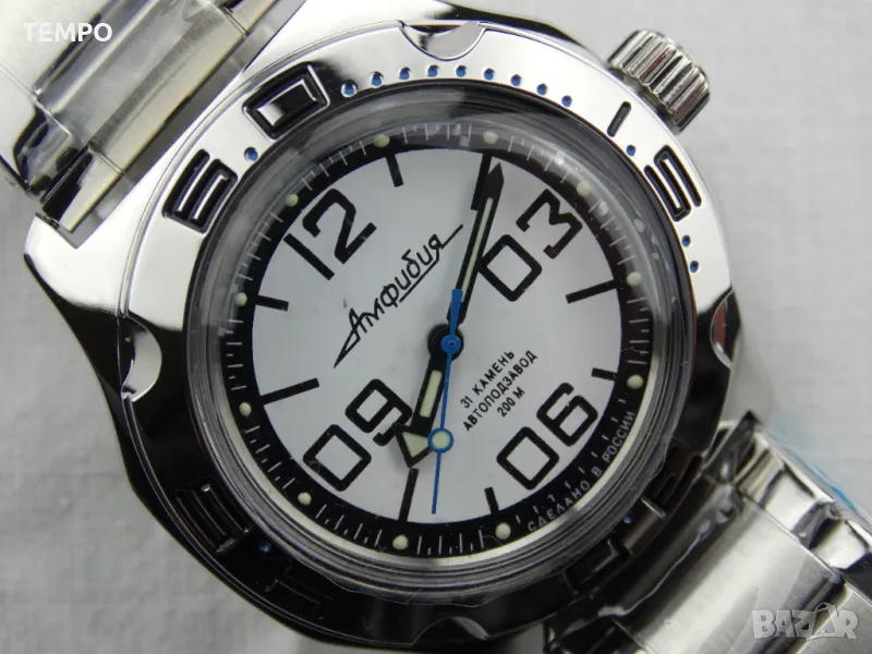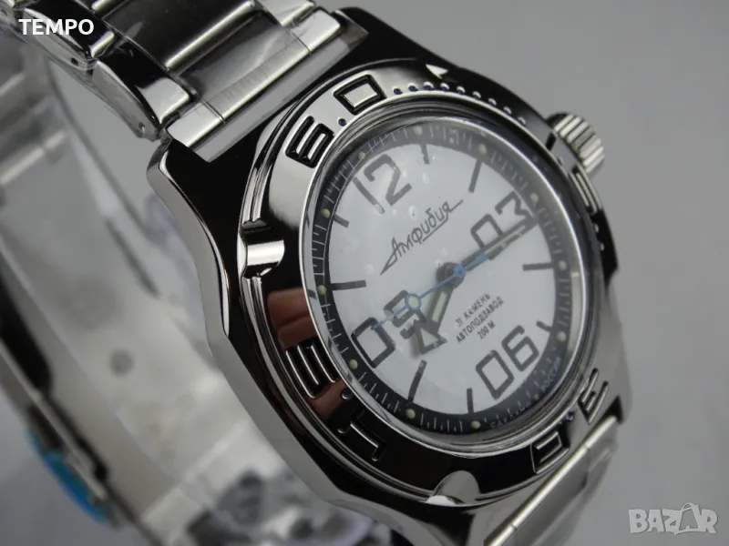 Часовниците Восток Амфибия издържат на най-екстремни натоварвания и удари, безпроблемна работа на дълбочина до 200 м в условия на значителни температурни колебания, във всякаква агресивна среда.
