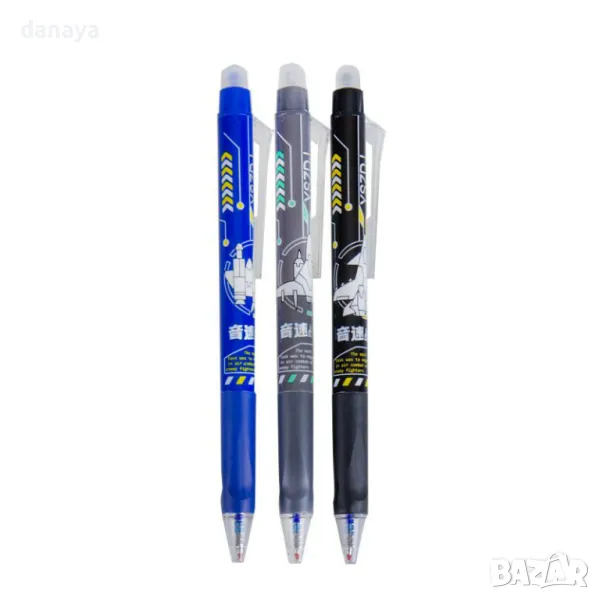 Изтриващ се син химикал с гума с момчешки принт Космически кораб. Клик модел. Изтриваем химикал, пишещ със синьо мастило. Изтрива се много лесно и бързо и не оставя следи. Особено подходящ за деца от началните класове. Този симпатичен химикал, детето ще може да изтрие лесно грешно написаното, без да оставя драсканици по листа хартия.