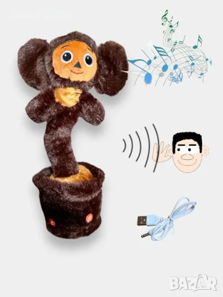 Плюшена играчка Чебурашка, Танцуваща чебурашка, Повтаряща думите, 33см → Обява 47469208