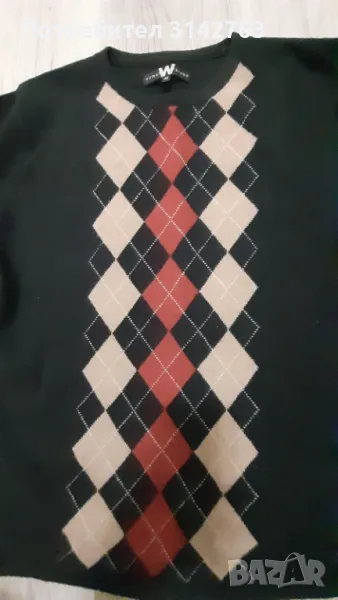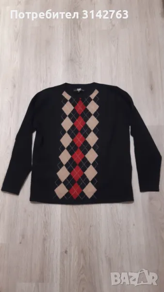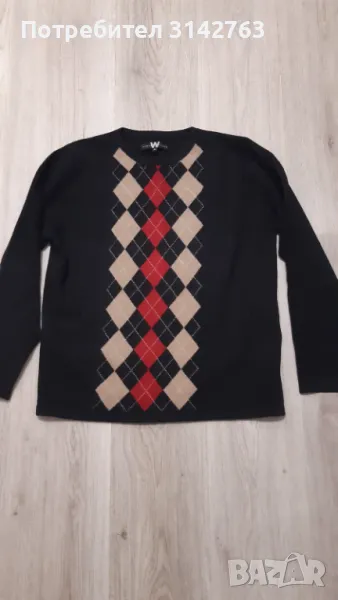 Пуловер от лаймска вълна. По етикет М, но е със следните размери: гръдна 104-120 см, дължина 63 см.