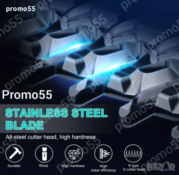 Тиха, нискошумна машина за подстригване с превъзходна производителност, без захващане или дърпане при рязане, с високо острие скорости (6400-6900RPM) и по-висок въртящ момент при спиране.