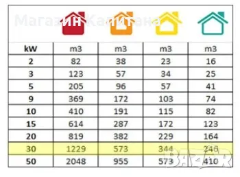 Отоплителен обем / 30ºC / (m3): 410-2048