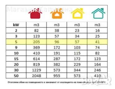 Електрическият калорифер 5KW е най-мощният професионален МОНОФАЗЕН калорифер на българският пазар. Предназначен за отопление на офиси, складове, халета, оранжерии, помещения за отглеждане на животни, строителни обекти, работилници и други. С помощта електрическият калорифер се осигурява бързо затопляне без конденз, миризма и консумация на кислород. В строителството намира приложение за поддържане на температурата в помещения през зимния период при шпакловане, полагане на настилки, боядисване. В зависимост от степента на топлоизолация на помещението, електрическият калорифер е подходящ за отопление на помещения с обем от 40 до 205 м3 (при коефициент на изменение на температурата 30 градуса). Ниското ниво на шум, позволява използването на калорифера в помещения в които работят хора, без това да им създава дискомфорт.