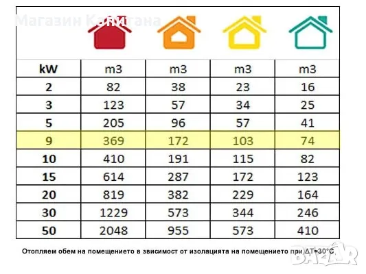 • Отоплителен обем / 30ºC / (m3): 70-350