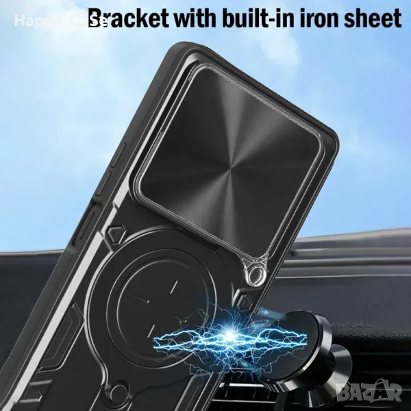 3. Възможност за закрепване към магнитна стойка в автомобил, осигурена от метална пластина поставена вътре в кейса
