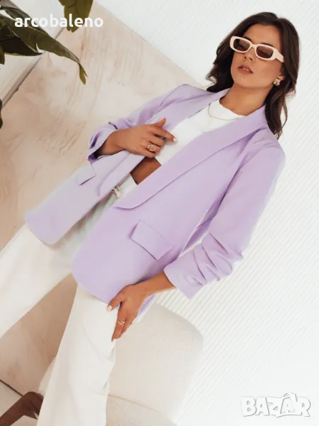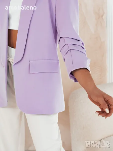 Това модерно яке с класическа яка и два практични джоба е перфектното допълнение към всеки тоалет. Той съчетава елегантност със смели, уникални цветове, които ще освежат гардероба ви. Перфектен за работа и за специални поводи, когато искате да изглеждате стилно с нотка оригиналност.