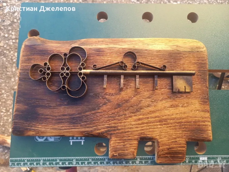 Ръчно изработена закачалка за ключове. Основа от 50 годишно буково дърво, шлайфано и омаслено с ленено масло, осигуряващо копринен финиш и дълготрайност на изделието.
